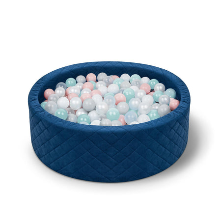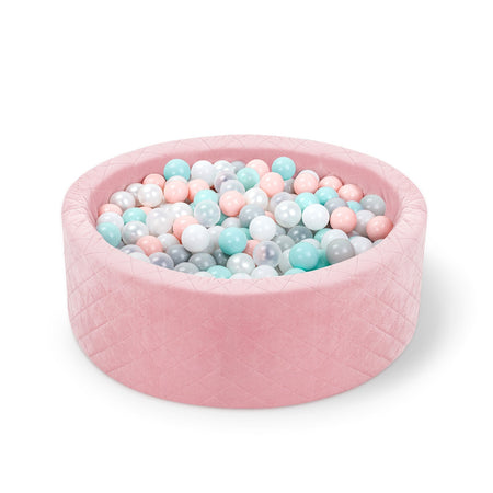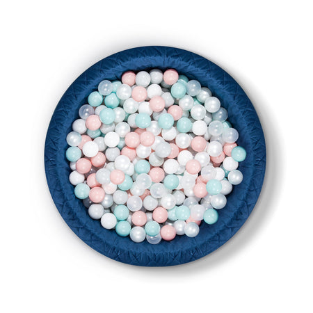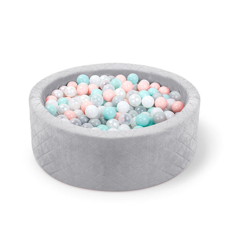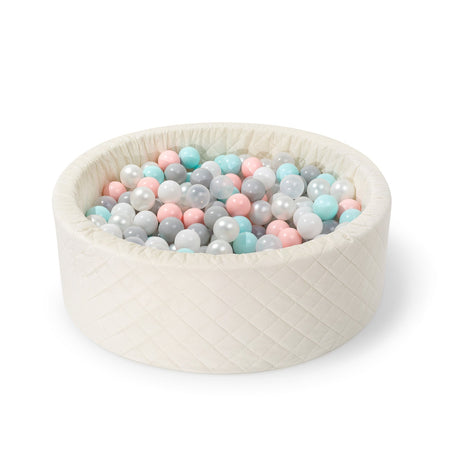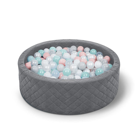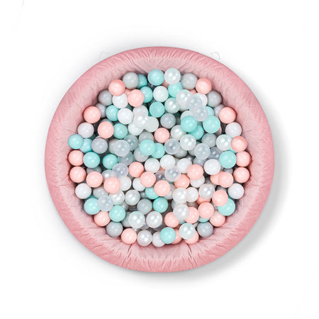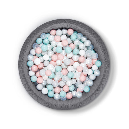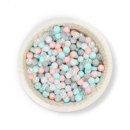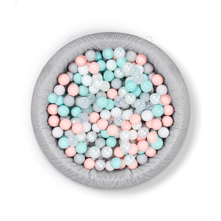 Die 5 cm dicken Seitenwände und der 1,5 cm verstärkte Boden sorgen für Stabilität und sicheren Halt beim Spielen. Im Set enthalten sind 300 weiche, geruchsneutrale und BPA-freie Bälle mit einem Durchmesser von 7 cm – in sanften Pastellfarben wie Weiß, Blau, Transparent, Perle, Rosa und Grau.