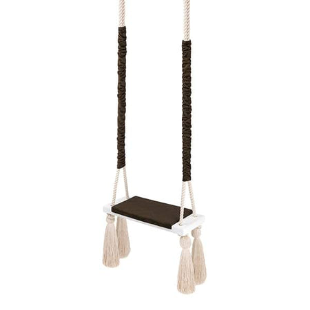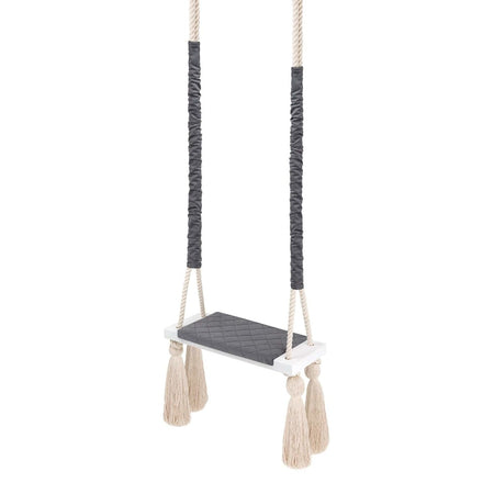 Gefertigt aus massivem Holz und gestepptem Velours bieten die Schaukeln eine komfortable und stabile Sitzfläche. Geflochtene Baumwollseile sorgen für eine sichere Aufhängung. Mit einer Tragkraft von bis zu 100 kg sind sie sowohl für Kinder als auch Erwachsene geeignet.